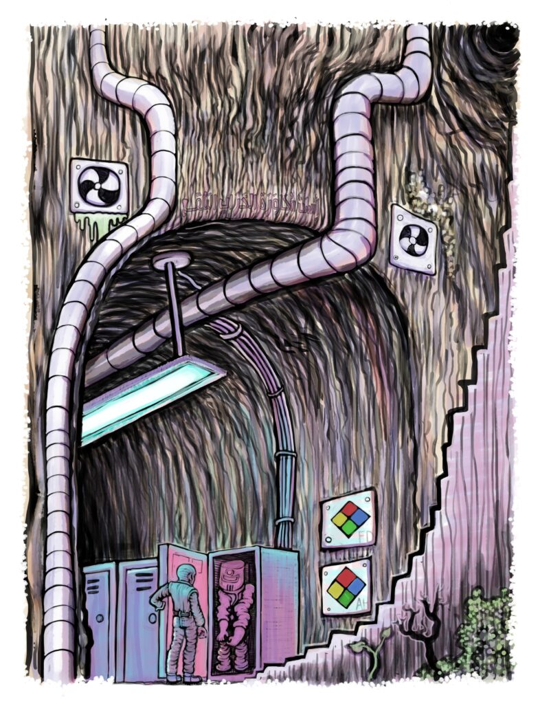 “Land of Iron” is a short graphic novel about a man’s struggle. He is torn between his duties and drive for achievement, and his soul’s pull towards a life of meaning, peace, and beauty. The struggle, that many of us face, usually ends in an unfortunate way.